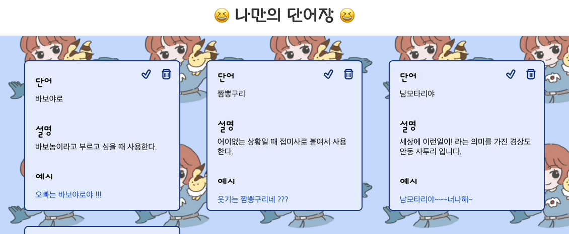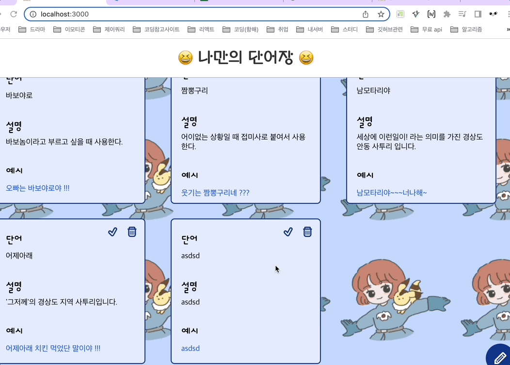 이렇게 완성본이다 !! 수정하기 기능을 추가하고 싶지만, ㅠㅠ