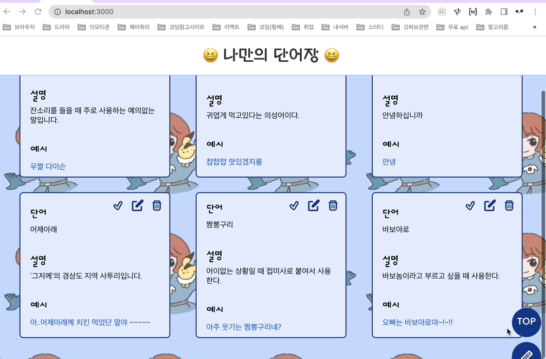 일단 미들웨어 안 만들었더니 수정한 것이 새로운 단어로 추가되는 현상이 발생..ㅋㅋㅋㅋㅋ