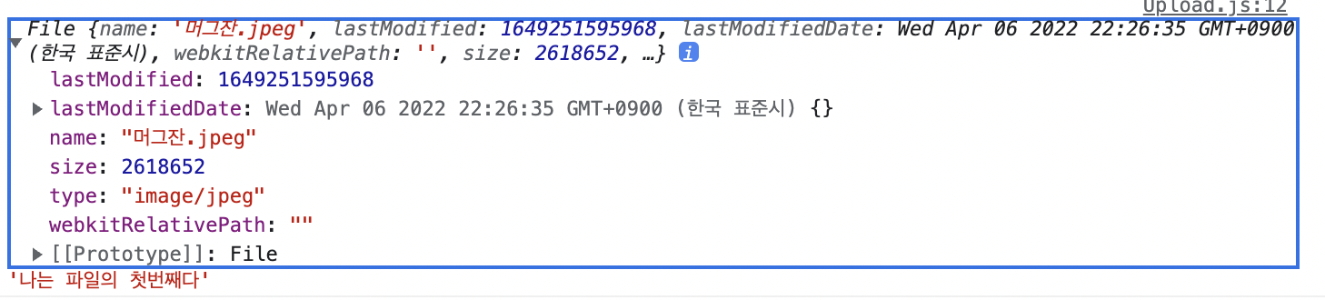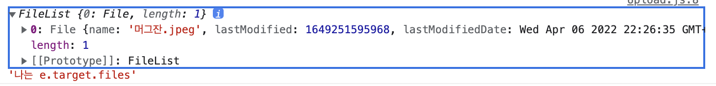 파일객체는 배열처럼 되어있는 친구다. 실제 array객체가 아니고, 그냥 파일 리스트라고 한당.