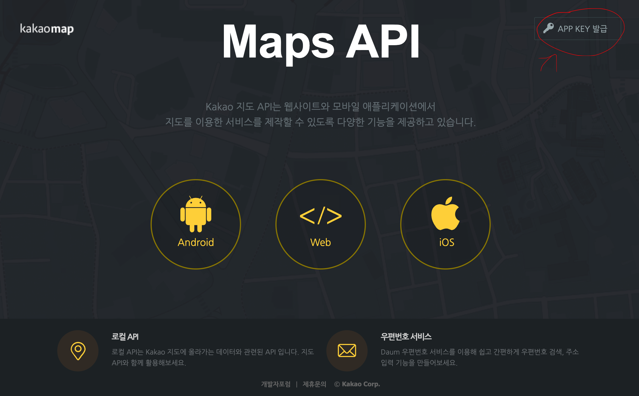 <script type="text/javascript" src="//dapi.kakao.com/v2/maps/sdk.js?appkey=발급받은 APP KEY를 넣으시면 됩니다."></script>